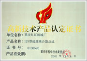 高新技術產品認定證書——125型超越離合器總成